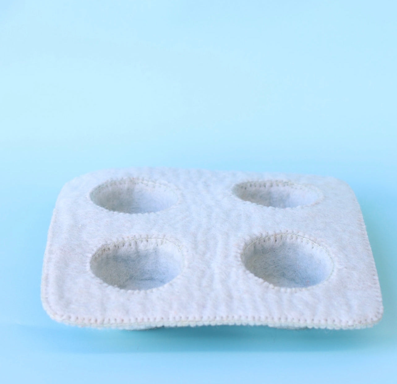 The felt baking tray adds a dimension of realism and play, allowing children to practice their fine motor skills as they play. The Easter Felt Muffins and Felt Baking Trays are handmade and unique toy that will bring hours of fun and entertainment to children while also providing a fun and creative way to learn about different types of pastries and how they are served, and it can also be a great way to celebrate a chocolate-free Easter.